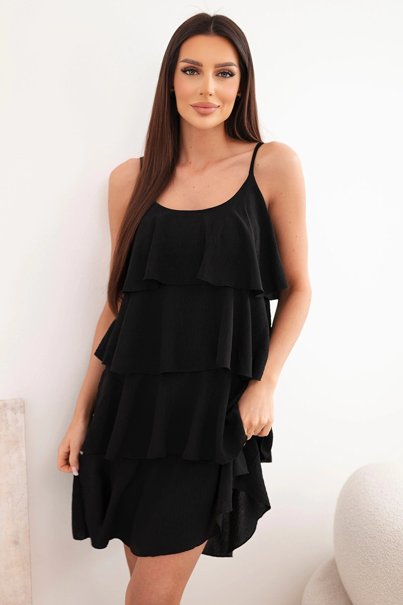 Õrn elastaani lisandiga kangas muudab kleidi kergeks, meeldivaks puudutusele ja hästi figuuriga sobituvaks. Õhukesed õlapaelad rõhutavad õlgu ja lisavad peenust, samas kui laienev volangidega alläär loob silmatorkava ja tüdrukuliku ilme. Mudel sobib hästi sandaalide, susside või kontsakingade külge, muutes nii vabaaja kui ka elegantsemate riiete loomise lihtsaks. Itaalias valmistatud kleit garanteerib trendika disaini ja hoolika töö, mis vastab ka kõige nõudlikumate klientide ootustele.