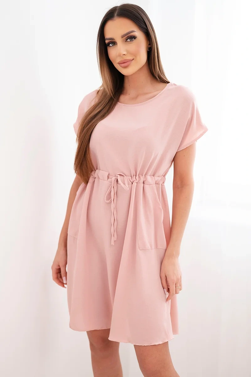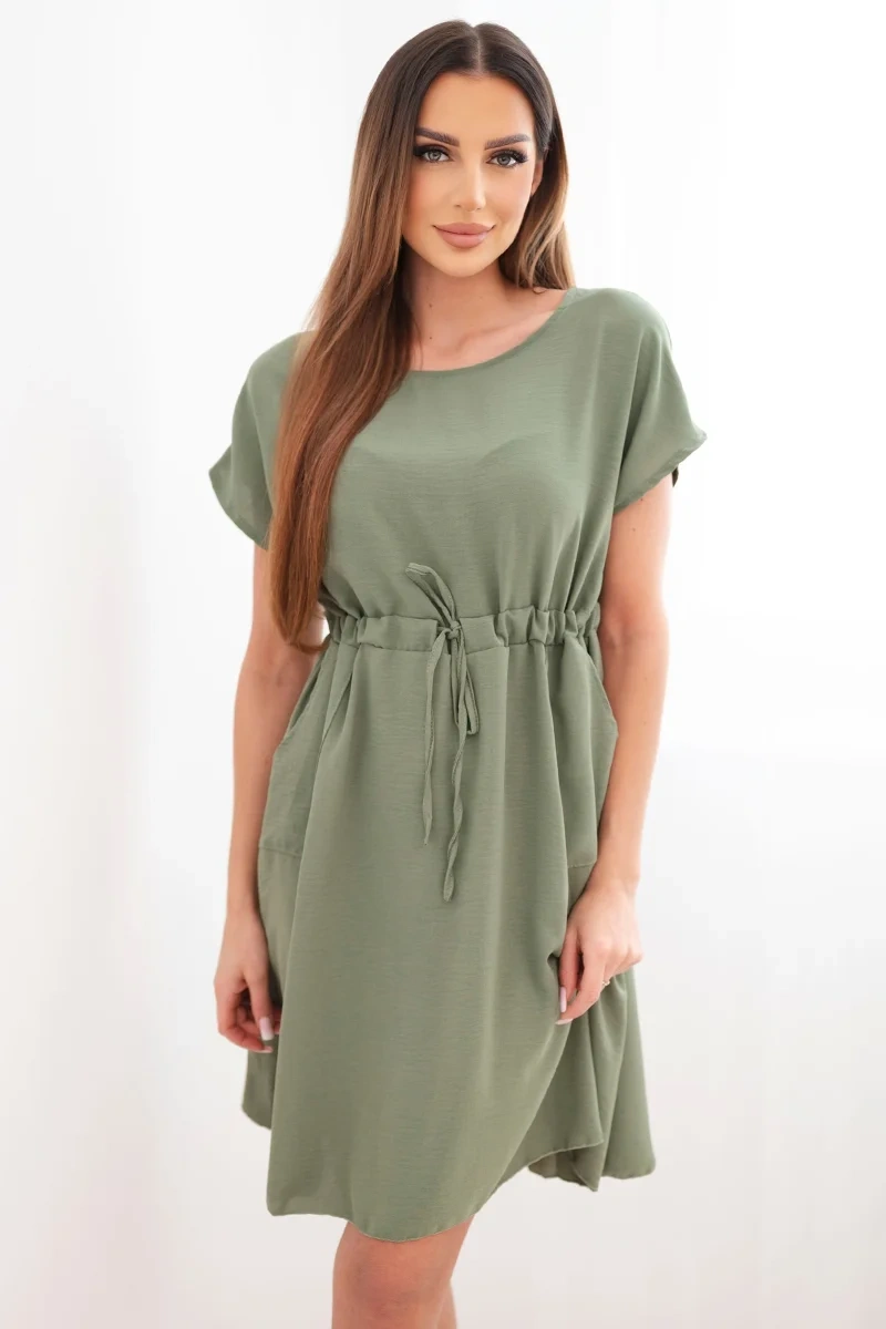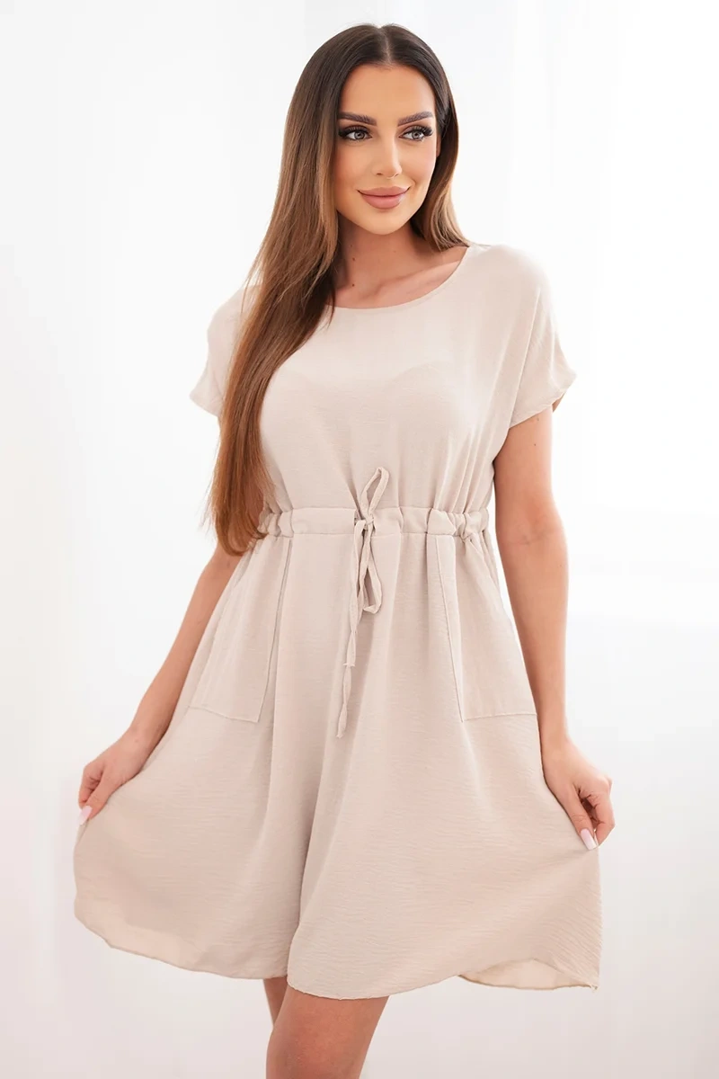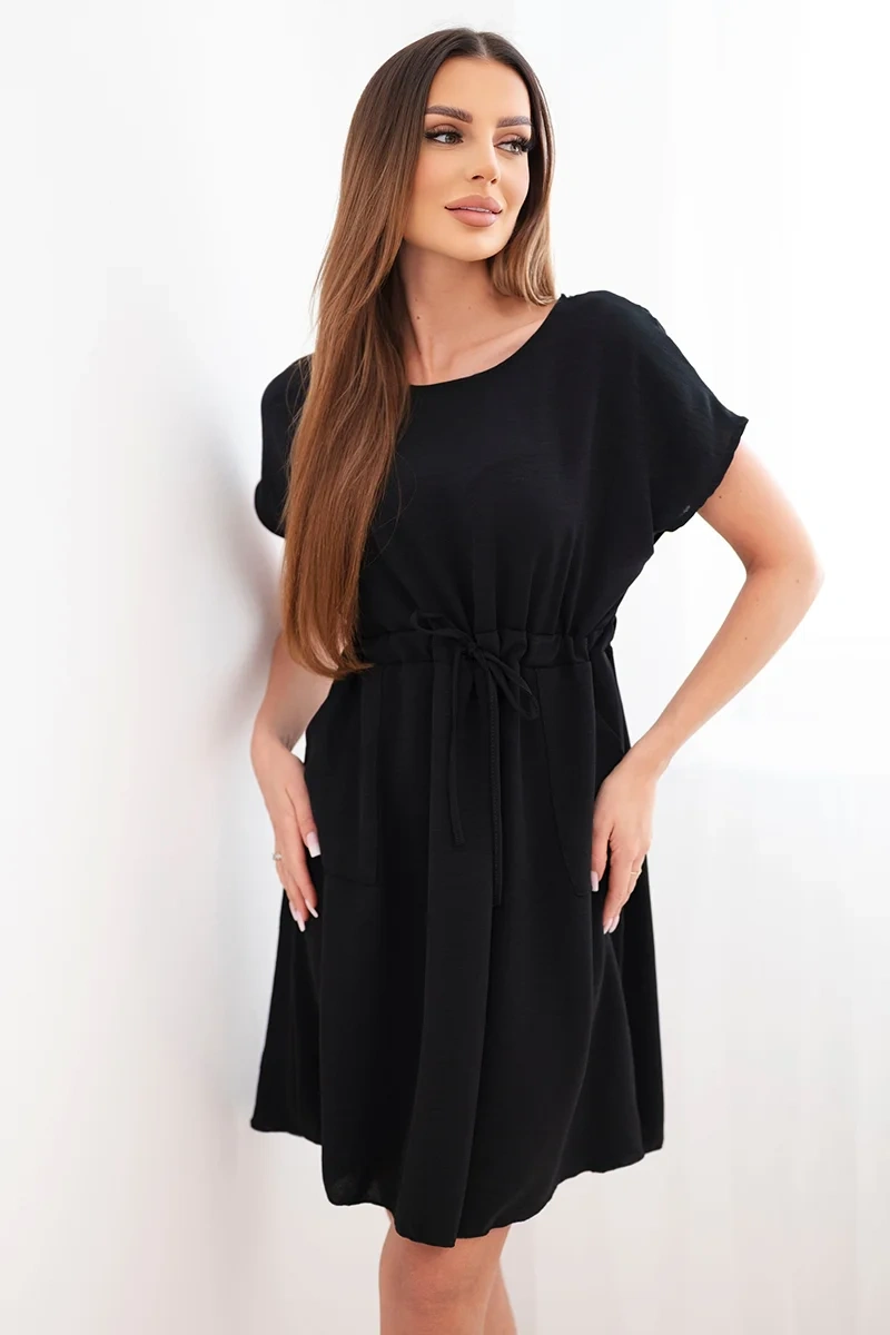 Lühikeste varrukatega ja vöökohal paeltega naistekleit on suurepärane valik naistele, kes hindavad mugavust ja moekat, pingevaba stiili. Laiem lõige pakub kandmismugavust ning reguleeritav vöökohal pael võimaldab teil kleiti oma figuuriga kohandada, seda peenelt rõhutades.