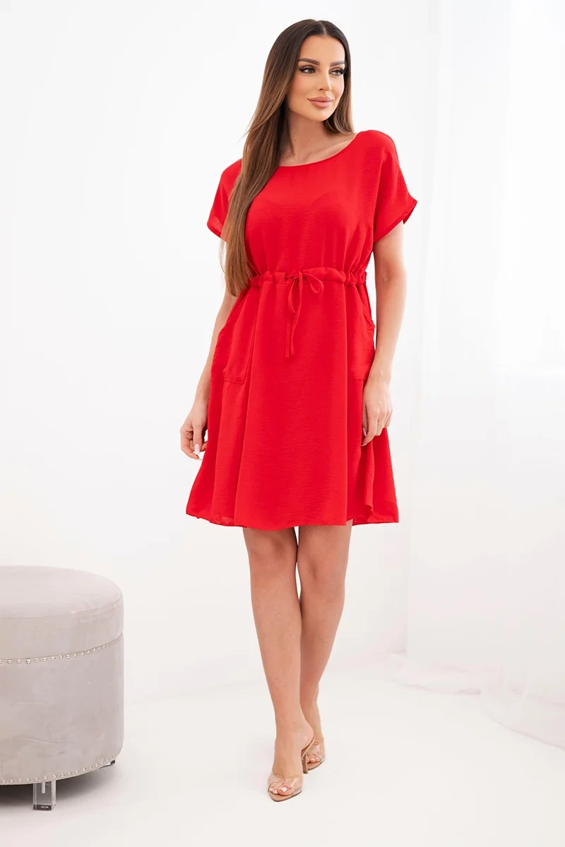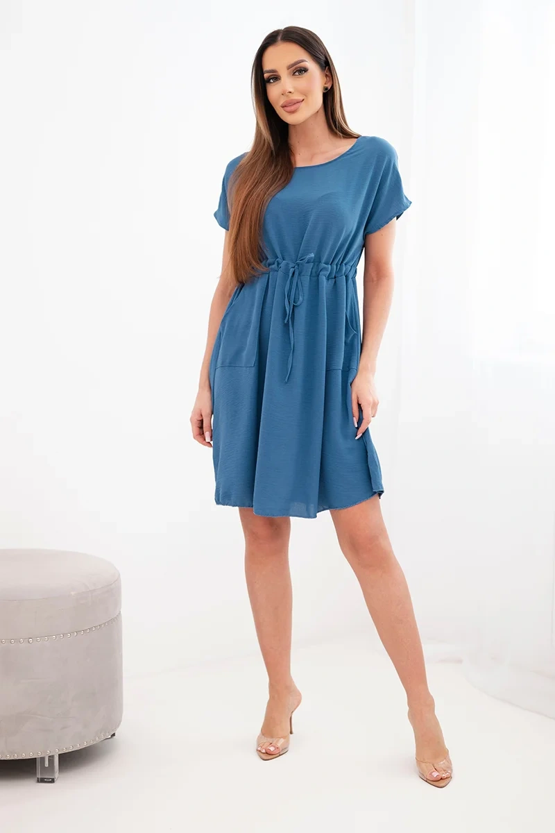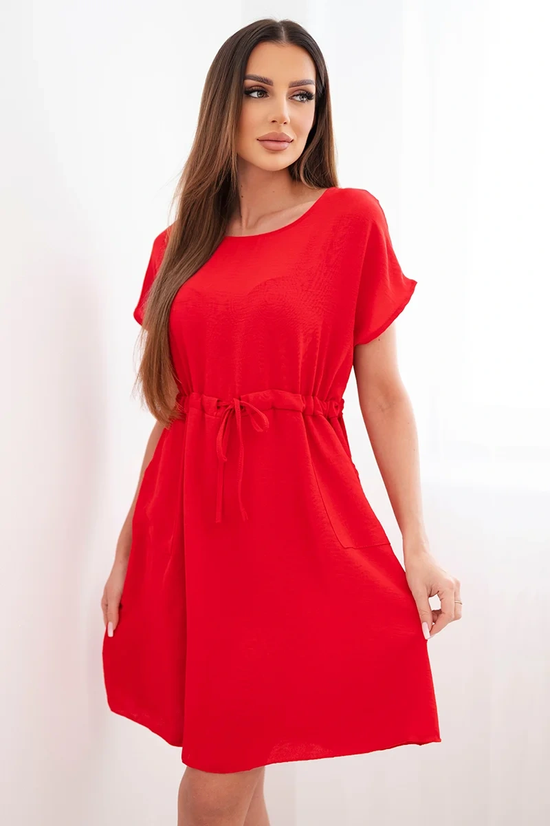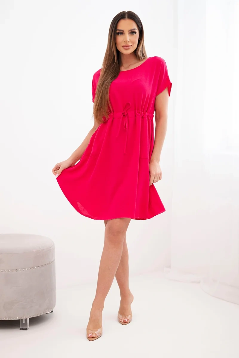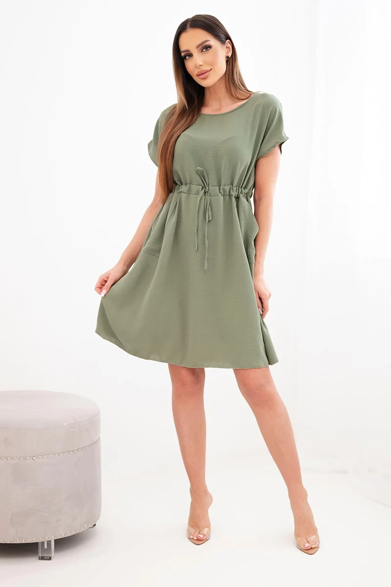 Lühikeste varrukatega ja vöökohal paeltega naistekleit on suurepärane valik naistele, kes hindavad mugavust ja moekat, pingevaba stiili. Laiem lõige pakub kandmismugavust ning reguleeritav vöökohal pael võimaldab teil kleiti oma figuuriga kohandada, seda peenelt rõhutades.