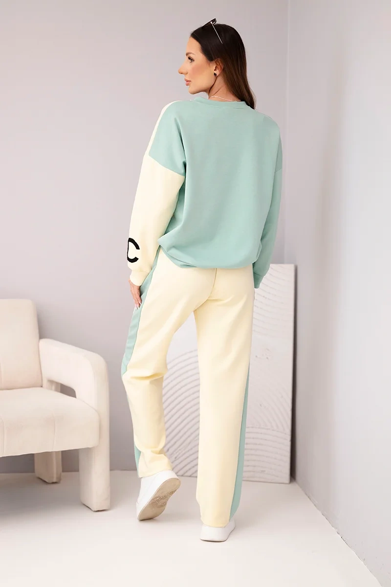 Nautige mugavust ja stiili selle pehme ja võise naiste dressipüksidega! See ainulaadne komplekt võlub oma ebatavalise pastelsete värvide – beeži ja sinise – kombinatsiooniga, luues värske ja naiseliku ilme, mis sobib ideaalselt igapäevaseks kandmiseks. Lahtine ülisuur dressipluus ja sirged püksid elastse vöökohaga pakuvad maksimaalset kandmismugavust. Esiküljel olev tikand lisab sportlikku elegantsi ja ainulaadset aktsenti.