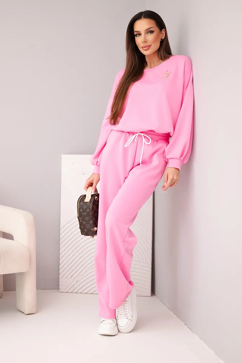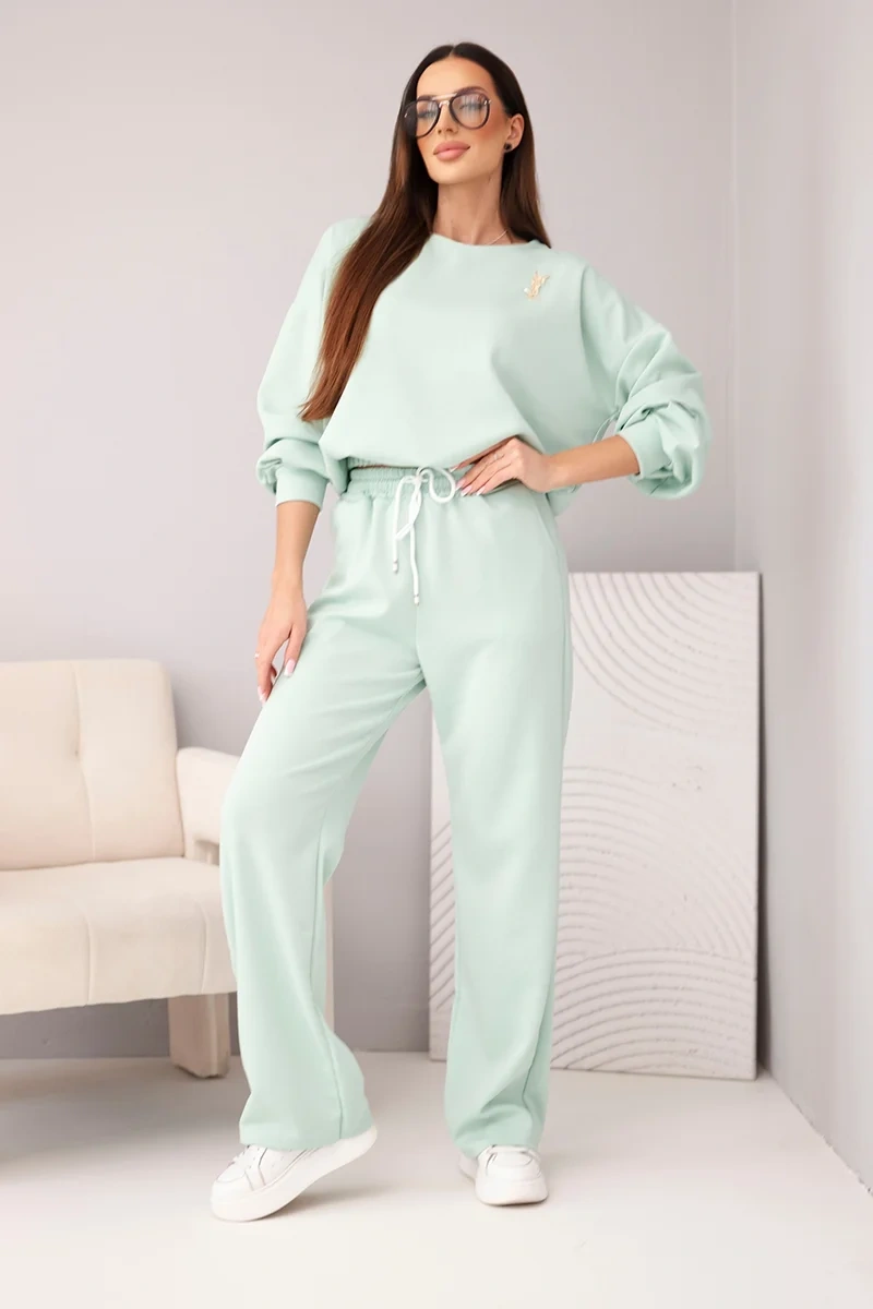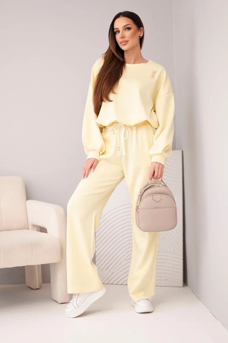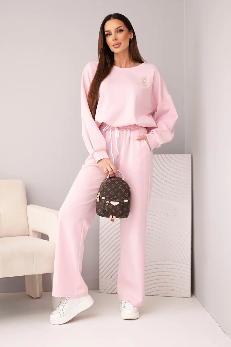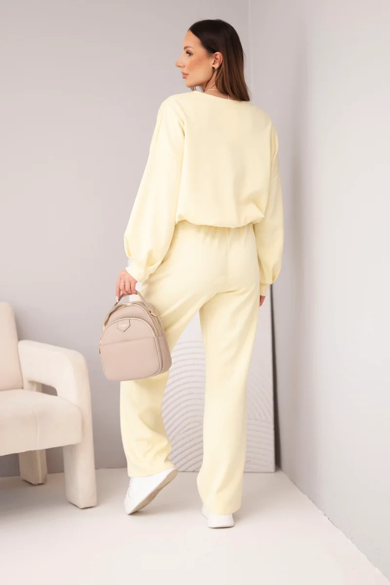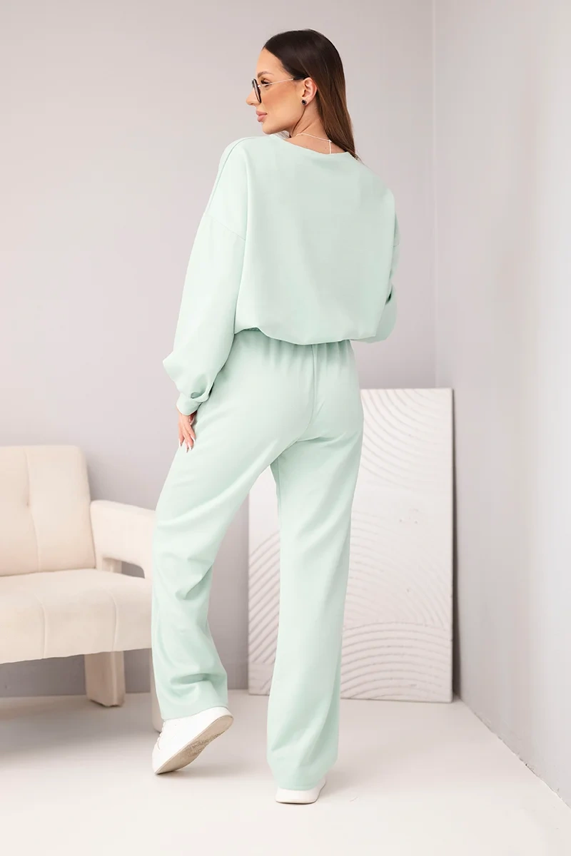 Lõik: lai dressipluus elastse vöökohaga + sirgete jalgadega püksid
