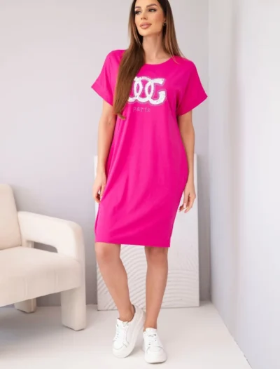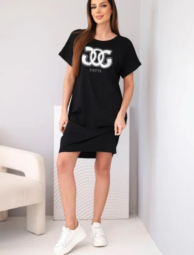 Naiste lühikeste varrukatega ülisuur kleit on moodne ja mugav valik naistele, kes hindavad igapäevastes riietes stiili ja mugavust. Lahtine lõige muudab kleidi figuurile kenasti langevaks, pakkudes liikumisvabadust ja kergust kandmisel. Dekoratiivne trükk esiküljel lisab iseloomu ja tõmbab tähelepanu, andes rõivale moodsa ilme.