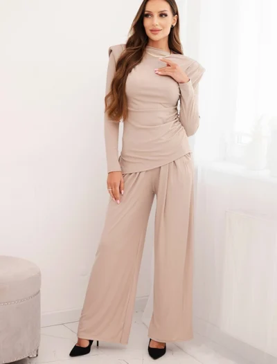 Lõige: liibuv topp + laiad püksid