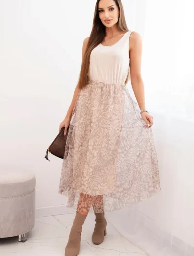 Kleit: viskoosist ülaosa ja tüll, kergelt laienev allosa loomamustriga